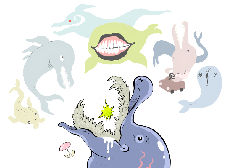 The polyp staggered to its little feet, wobbling as it stepped out of the furrow its body had carved in the fungus. It probably said something like "now you've done it," or intended to, but all that really came out was a gurgling, muttering sound as it flung itself forward again, only to collide with an ever-so-slightly firmer swing of the dolphin's monstrous tail. This kind of thing went on for longer than was really comfortable to even the dolphin, which felt only disappointment at having such a spongy and breakable nemesis, and made the decision to move on with its life after another quick snack.