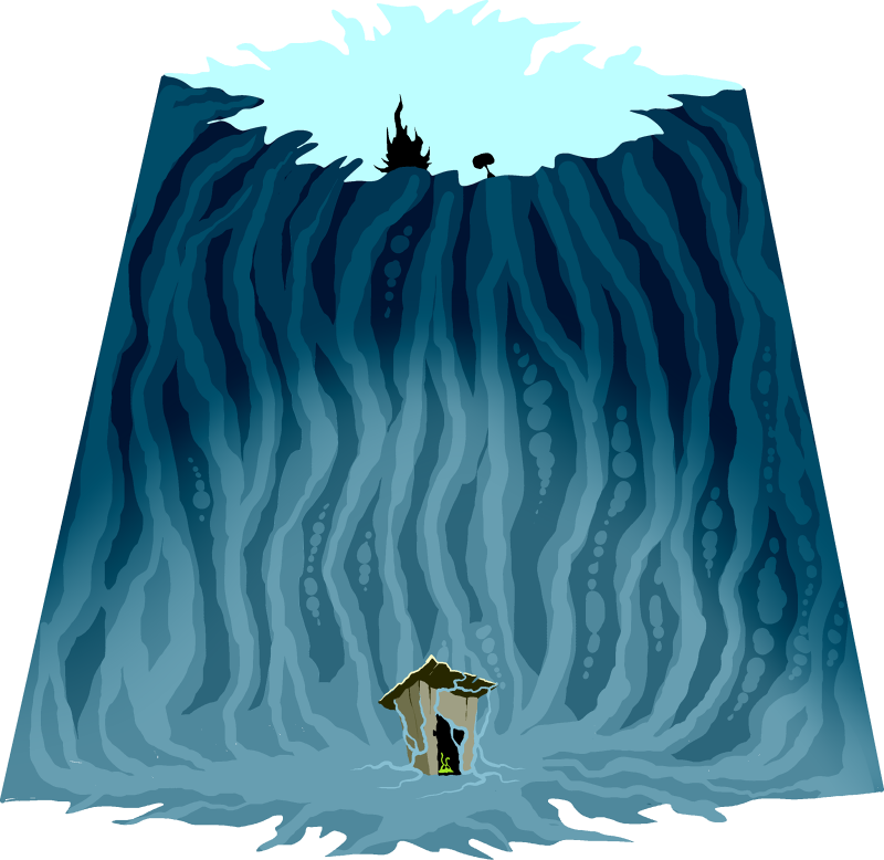 ...It hadn't been the floor of the forest at all, but an overgrown canopy. The true floor was far below, and that dimly familiar vibration emanated from within a tiny, forgotten old shack.