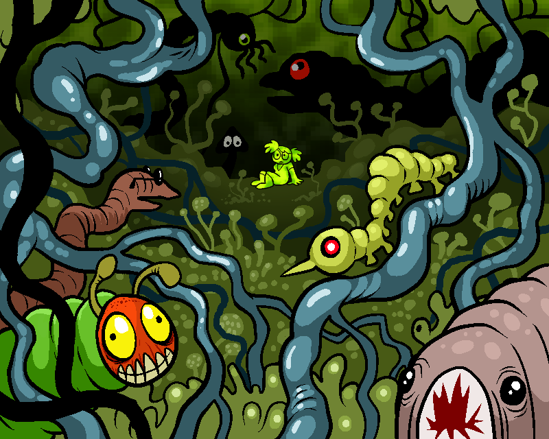 You drift for some time, and finally land softly on damp, mushy ground. Despite the darkness, your surroundings are clearly visible, as though the humid, sour air itself is dimly luminescent.