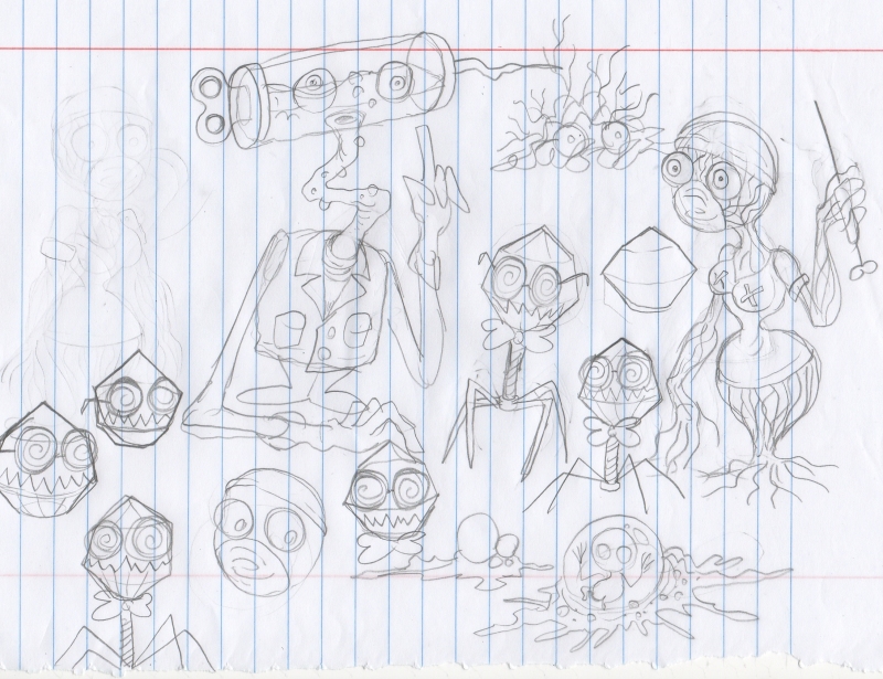 I started planning concepts out as early as spring 2014, and the following are all sketch pages produced around that time: