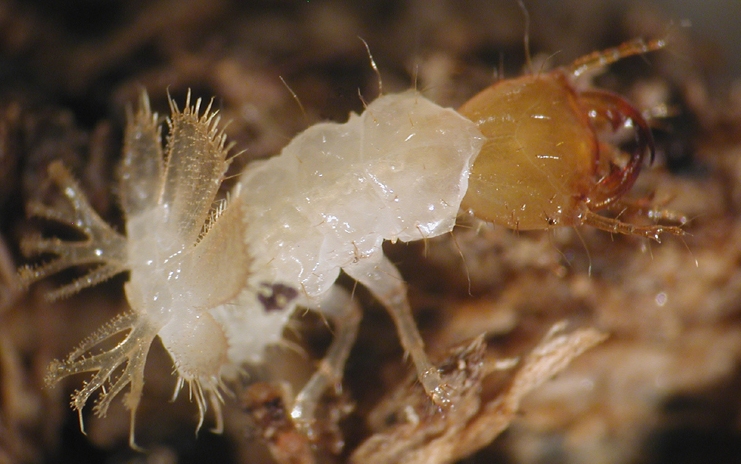 The unique-looking larvae of the Paussinae typically live like reversed tiger beetle larvae (see above),
