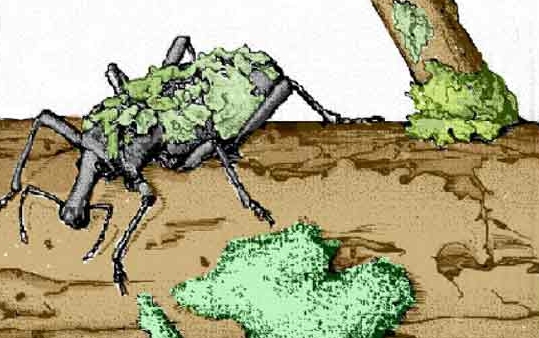 camouflage by encouraging the growth of fungi, lichens, algae and tiny plants on their specially pitted bodies.