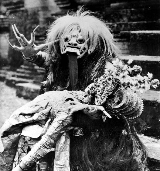 Many times now on Bogleech, we've talked about mythological vampires, ghosts and witches who fly with only their head and entrails; it's pretty much a basic template for wicked creatures of Southeast Asian lore, but I've yet to properly introduce you to some of the most fiendish and culturally important of all: the Balinese Leyak, minions of the demon queen Rangda. Human in appearance by day, these black magicians take on a hideous visage after dark, their heads and entrails breaking away - just like the Penanggalan and Krasue - to hunt for sustenance, whether the putrid bodies of the dead or the fresh blood of the living. Naturally, the unborn are a favorite treat.