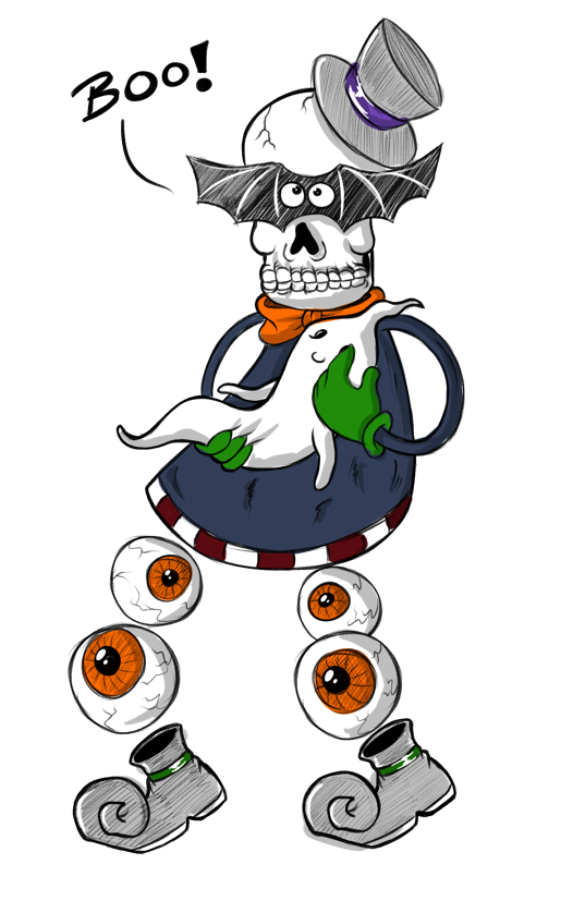 "A flapping lump of flesh shaped like a bat obscures the face of this rag-clad skeletal horror. In place of legs, a glistening, rolling column of unconnected eyeballs stretches from this nightmare's pelvis to its bony feet. A shrieking cacodaemon circles overhead, and ghostly figures follow behind it."