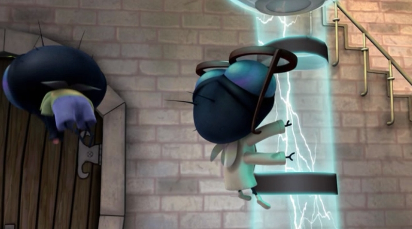 In an effort to change his father's mind, Fly Boy convinces him to spend some father-son bonding time the way only huge, winged, sapient insects can, from a rancid garbage feast to upside-down ceiling tennis. Unfortunately, a run-in with actual giant flypaper kills their buzz, so to speak, and convinces the professor more than ever that Dipteran life is no life for a single father and his boy.