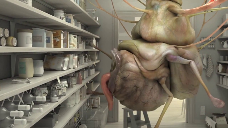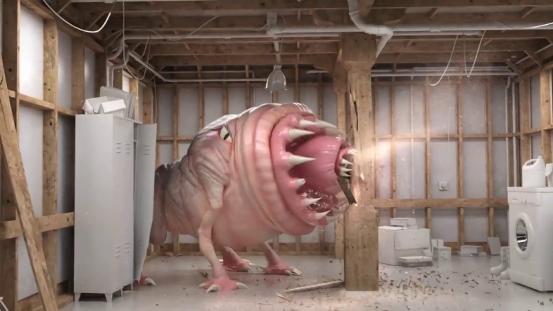 Besides being the prettiest, the Pantry Monster best demonstrates where these commercials can so easily go wrong. When you show us an ooze demon vomiting into a refrigerator and then you're all "don't worry, it's a metaphor for some silverfish" I'm pretty sure most people will just feel, at least subconsciously, that maybe some silverfish aren't such a big deal to see around the house, and most of the time, of course, they aren't.