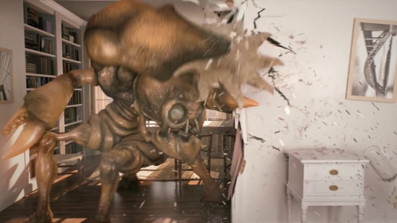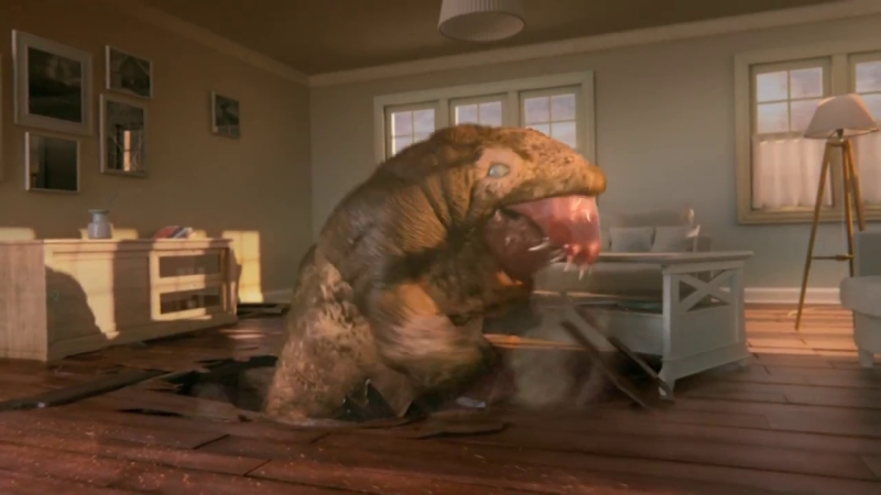 This is quite possibly the most "mundane" of these monsters, just a quadrupedal beast hatching out of a giant egg to eat its way through a floor, but its face and jaws are almost straight off a