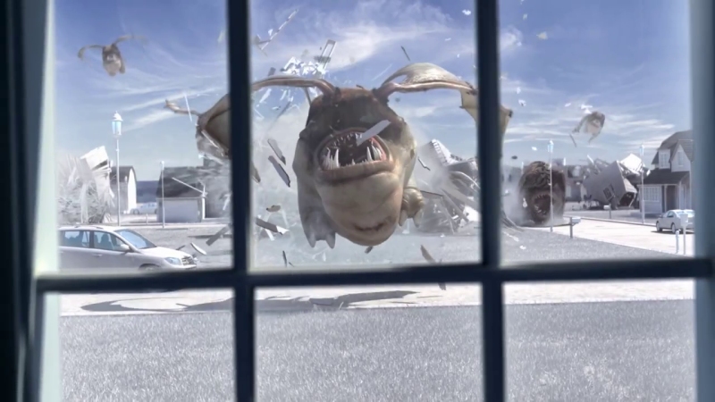 goblin shark, and its pudgy arms are so precious! You can tell this might have been a later, lower-budget ad; the CG model doesn't seem quite as detailed as others, and there's a constant motion blur that makes it impossible to get a screenshot as beautiful as this guy deserves. You'll also notice they changed the formula for this one, just coming out and calling termites themselves