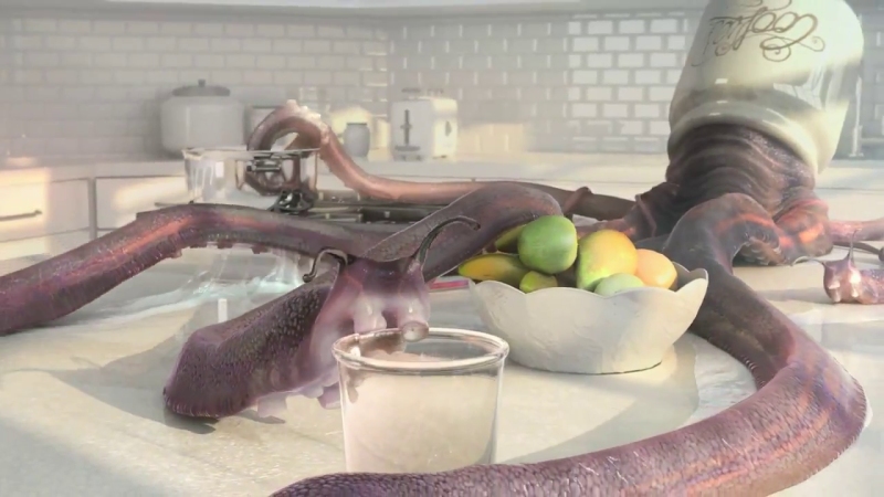 glorious chimera of gooey mollusks whipe its phlegm all over a countertop, finally revealing that the true culprit is no fantastical kitchen squid at all, but ordinary, real-life cockroaches!