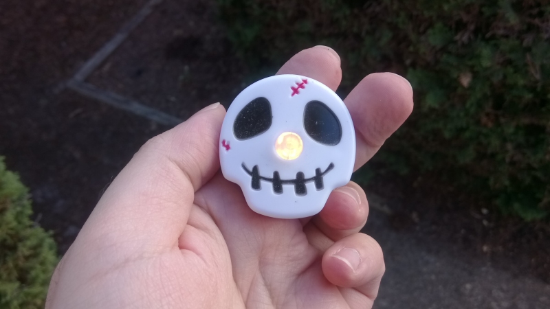 A large number of Halloween items I've purchased over the years are designed to house a small candle or one of these LED imitations, but for whatever reason I've just never really get around to lighting them up.Maybe that will change now that tea lights come in these wonderful little skull shapes, with fake flames for noses and bloody red scars for good measure. Blood, scars, stitches or any combination of the three can pretty much triple the appeal of a Halloween skull in my book.