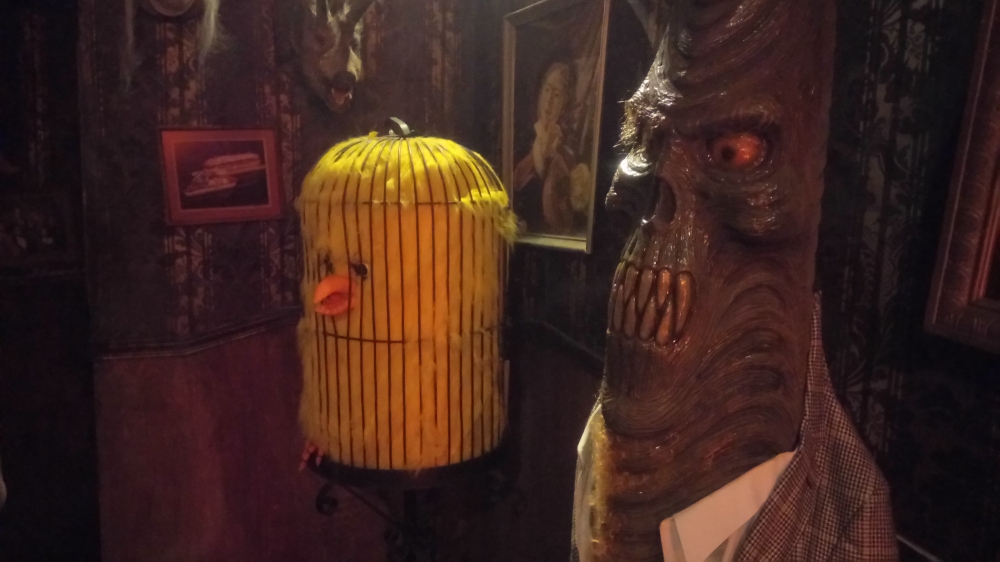 One of the very first things greeting you in the museum is a hilariously sad, cartoonish canary that somehow grew to fill its bird cage, a weird, comical and pitiful visual I never thought to associate with a "house of horrors," but I can't possibly say it doesn't qualify as such...though I'm sure most of you first zeroed in on that guy in the foreground. What's up with that guy?
