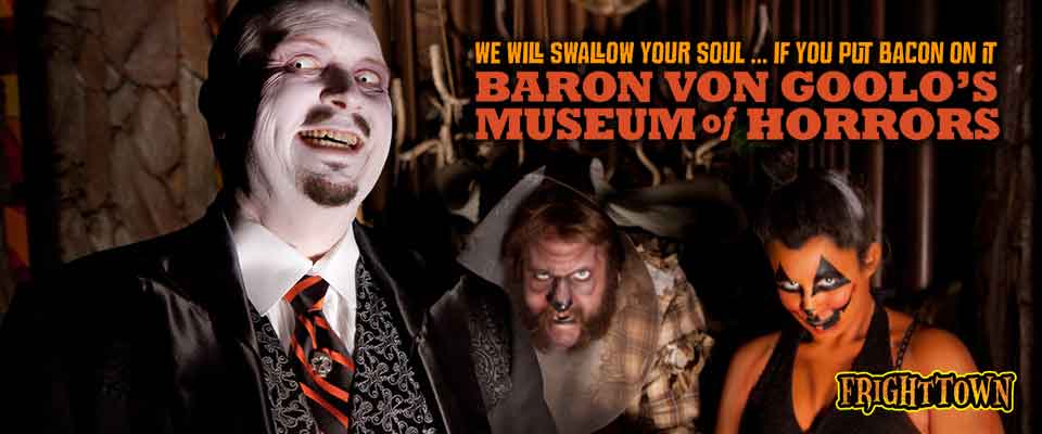 This brings us to Fright Town's "star" attraction, themed around a creepy circus and museum of curiosities, and for once, a haunt outright encourages visitors to slow down at points to take in the sights...though Baron Von Goolo's Museum of Horrors had so many sights, I couldn't possibly fit even half of them into an article of any reasonable length...