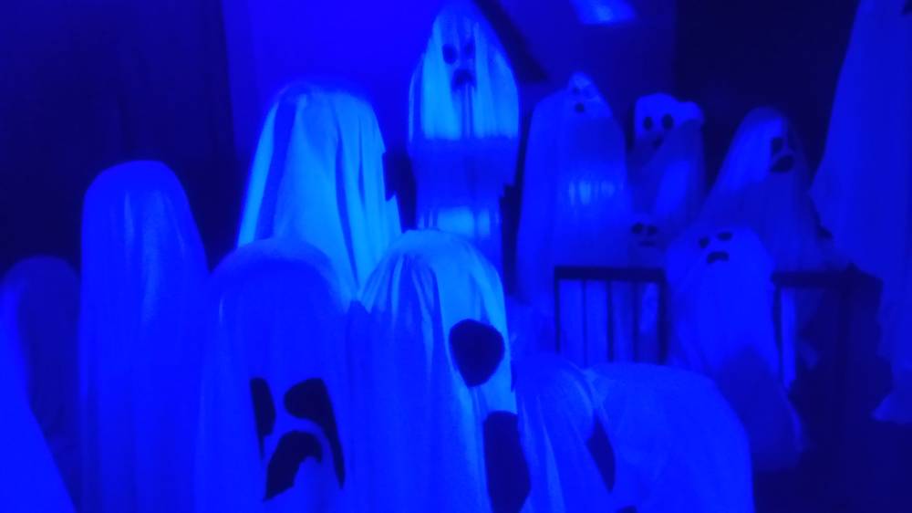 Speaking of classic startles, though, you gotta love an attraction that pours so much grotesque artistry into every display only to spring a maze of old-fasioned sheet ghosts on us at the very last minute, some of which, of course, had actual people inside them.
