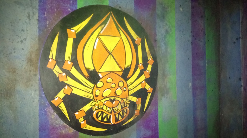 Just look at this wonderful artwork keeping everybody company while they wait in line! There were several of these retro-style paintings, but the spider is clearly the coolest.