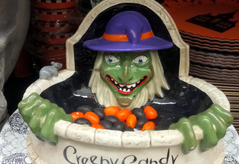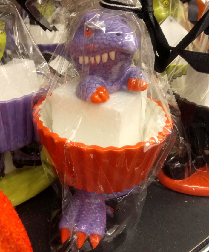 At least, I think this is for holding an actual cupcake? Whatever it does, this is one of the few times I've seen a nonavian dinosaur presented as a Halloweeny creature in itself, and there isn't any logical reason it shouldn't be. These are animals SO spooky, every single one of them are dead.Creepy Candy Witch