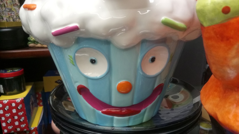 We've talked about the phenomenon of ceramic figurines who are also shaped like paper bags. Namely, we've talked about how it makes delightfully little sense whichever way you slice it. Like the Pokemon, Tropius, taking away any one of the elements here would result in something that makes far more sense, but just isn't a fraction as charming.Exceedingly Happy Cupcake