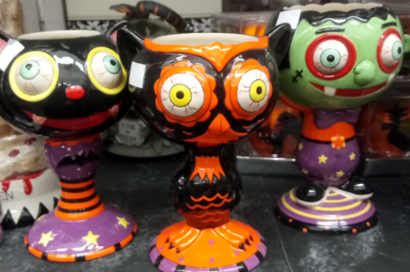 I just really love the hideous sneer on this witch. She is ecstatically hyped for a child to place their hands anywhere near her mouth.Bloodshot Eyeball Cups