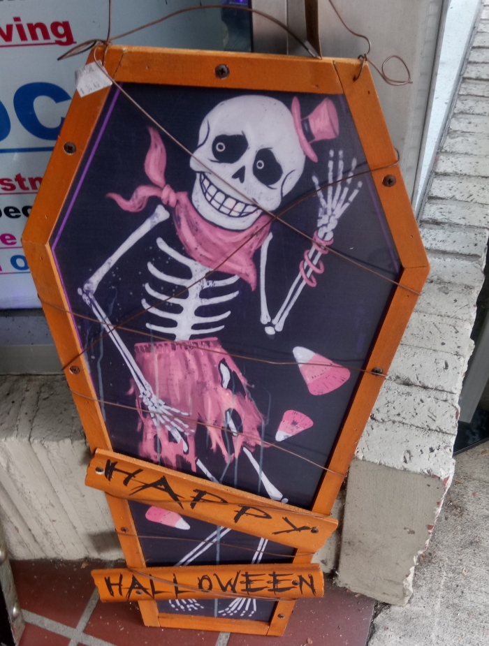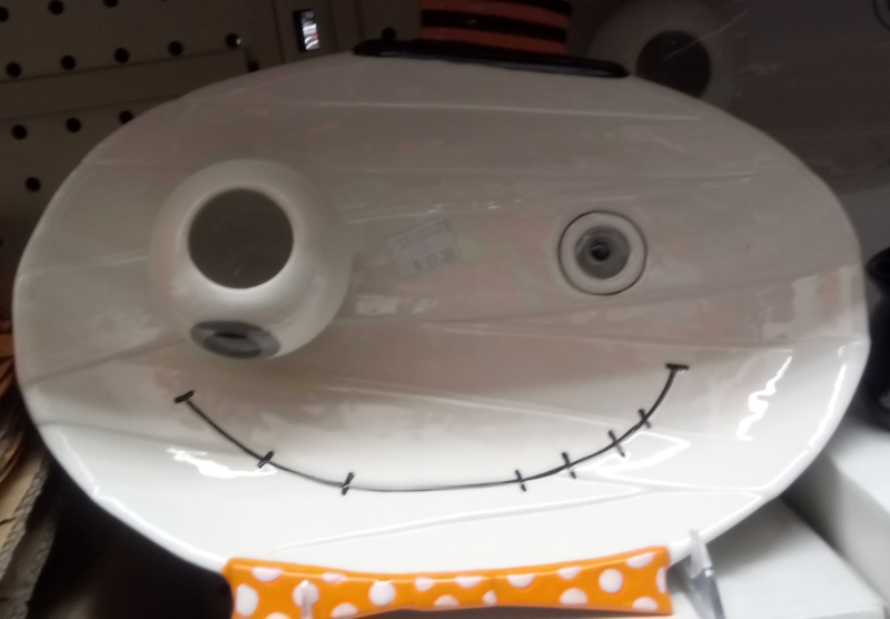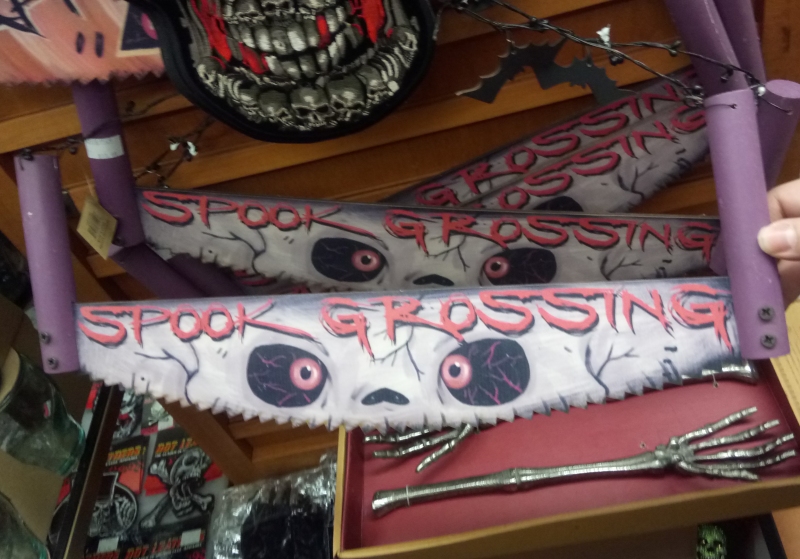 This is one thing I fell in love with and could actually afford to buy this year! A saw that's also a toothy skull face and a warning sign with a pun written in blood?! Sign me the HECK UP for some SPOOK GROSSING. You know our #1 rule, too: if it has any facial features, it's an actual monster. You cannot convince me these aren't living, skull-faced saw creatures we're looking at here.THIS......THING