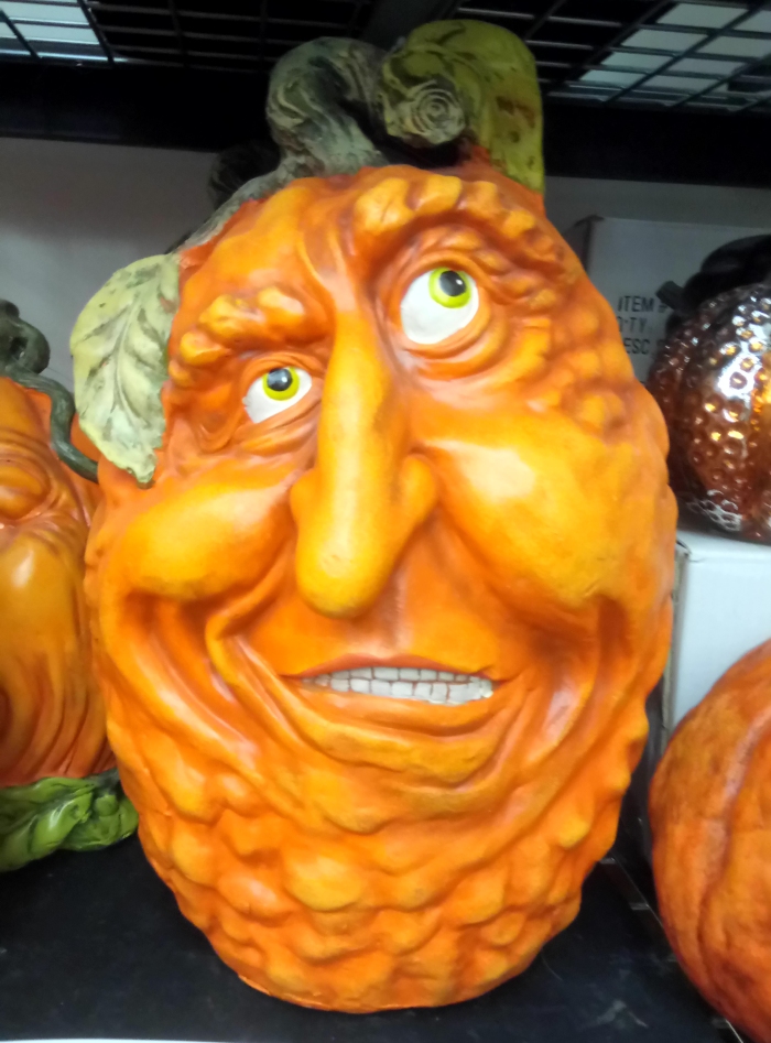 Speaking of Undertale, I see you there, Sans. I am BARELY reaching here. I really can't see any other face in this one. I don't know what he's so shy about, he is absolutely rocking that tattered pink ensemble and tiny hat. Every single day can't be Hoodie Weather you nerd.Rotten Goblin Pumpkin