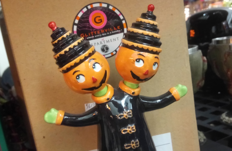 This is another one I'm not entirely sure is "really" a Halloween item, but that's a ghostly face whether they intended it or not, and we've very firmly established that all sentient confections are a category of spook. Welcome to Halloween, exceedingly happy cupcake!Two-Headed Pumpkin Shakers