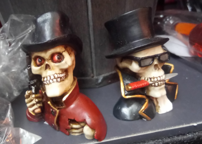 Located not all that far away from us in Oregon City, I reviewed Ghoul Gallery last year shortly after we moved to this coast, and it remains the single Most Halloween Halloween store I've encountered in all my years. It's even open all year round, with as much Halloween focus as usual, but I managed to hold off on revisiting it until at least September again. Just walking through this place is such a flawless, high-concentration Halloween experience that it only feels right to make a new seasonal tradition of it.