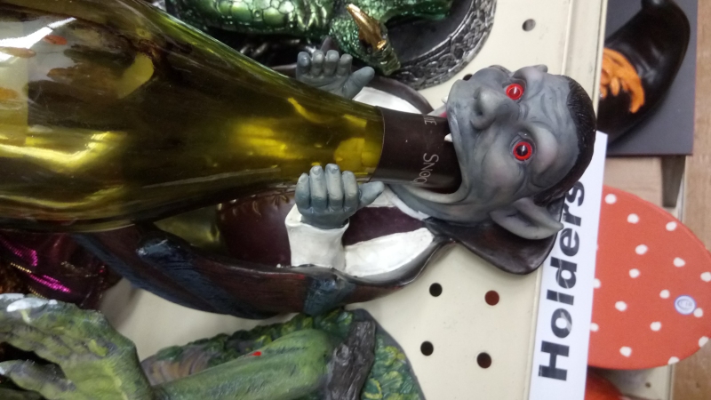 Okay, so this crow looks almost exactly like the cheaper half-skeletal crows I found at Party City in 2015, which is fascinating, because those crows looked entirely unlike an actual avian skeleton in such an oddly particular fashion that there has to be some "alpha" version of this specific mutant bird out there somewhere, maybe a particular sculptor who coincidentally designed both those cheap knick-knacks and this pricier resin piece, or maybe one is simply a pale imitation of the other?Drinking Vampire