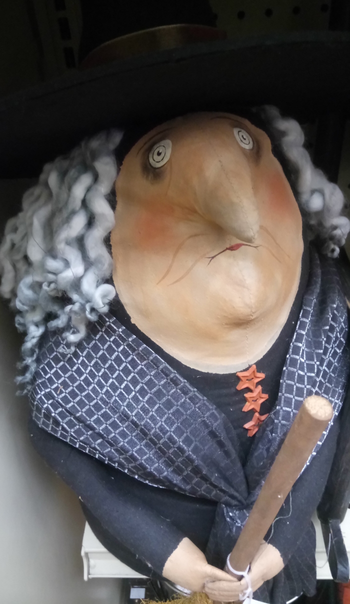 These bottle-drinking characters are always funny, but like I've said before, even funnier if you give them something other than a wine bottle. For a vampire, I'd have to go with a bottle of ketchup.Big-faced Witch Doll