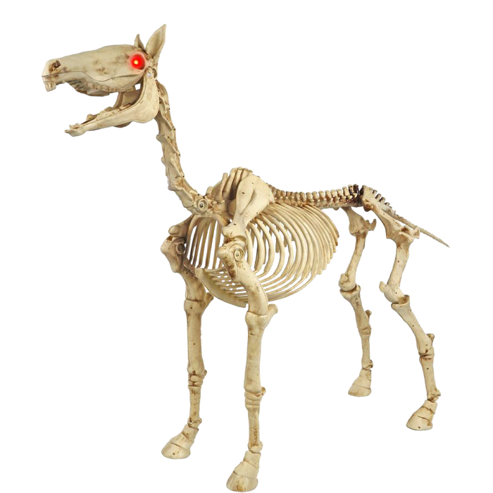 Almost life-size and at least a couple hundred dollars, this skeleton horse is almost completely accurate to boot, except for the bone ears that have become a staple of Halloween skeleton animals. I don't mind them, per se, but I wouldn't mind their exclusion, either. A horse skull especially doesn't need ears. Anyone can tell the grim and soulless visage of a horse at a glance, skin or no skin.