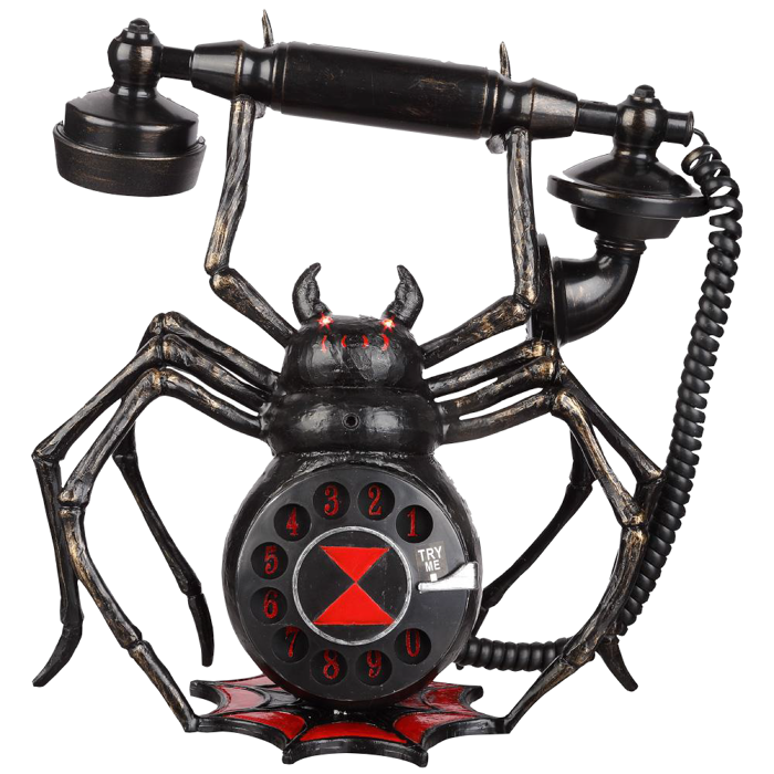 Fake Halloween telephones are all the rage lately, and I'm glad to see one that's also an entire spider, the abdomen so nicely integrated with the phone dial. It's the kind of spooky phone a cartoon haunted house would include, and I just wish I could somehow use it as a real phone.