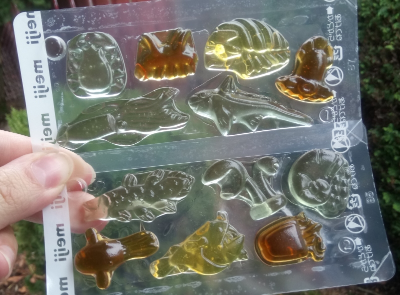 With beautiful shots of abyssal creatures on the packaging, my immediate guess was that these would be gummi candies, possibly due to the illustrations of what also look like gummi candies.And I was right! Each pack offered an entirely different set of cute, tiny gummi critters, and I must say these are some truly beautiful hunks of gelatin. Far too beautiful to ever open up and eat, which is fine by me. I've already got gummi candies I've been hanging onto as wall decorations for years at a time.