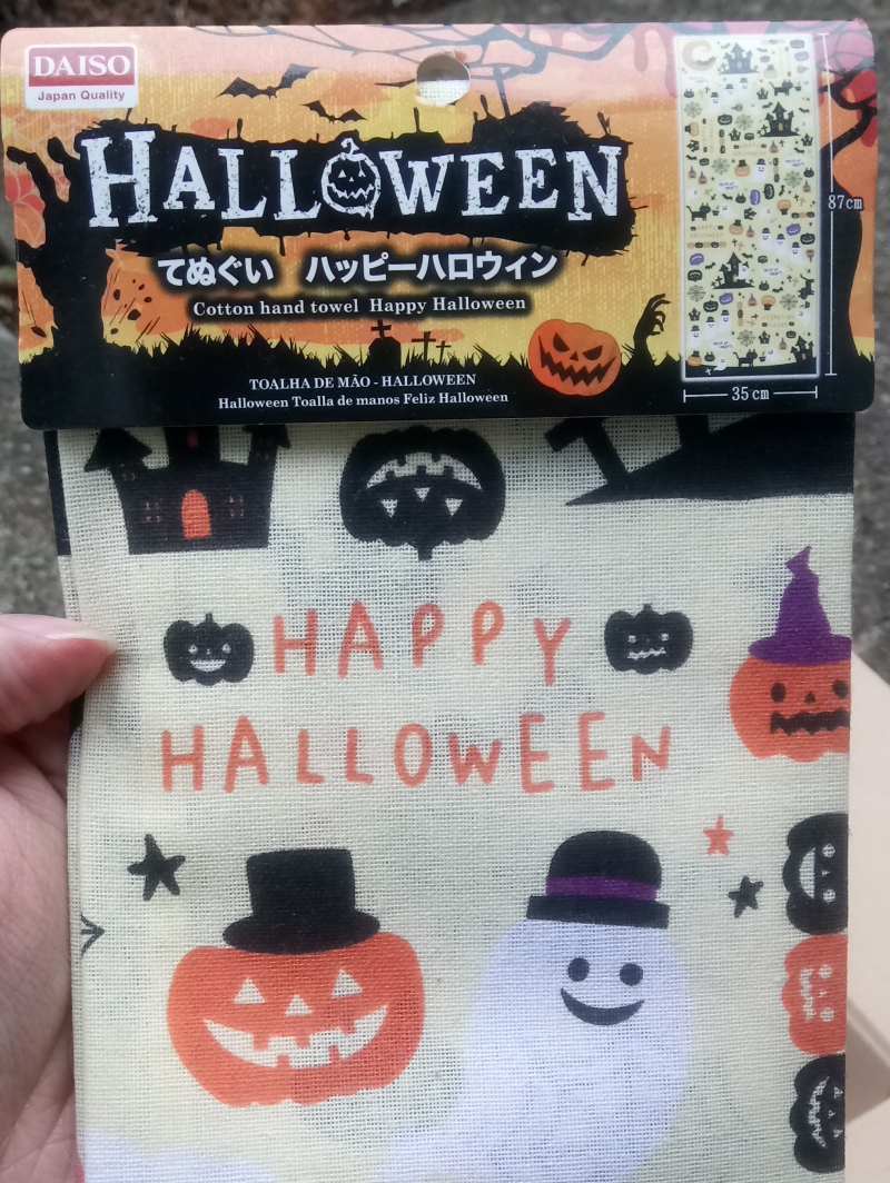 See, mole crickets are one thing, but you're telling me those spoiled rotten kids in Japan can put some money in a metal box and it spits out a plastic replica of a mutilated stingray mummy?!>DAISO Halloween Hand Towel
