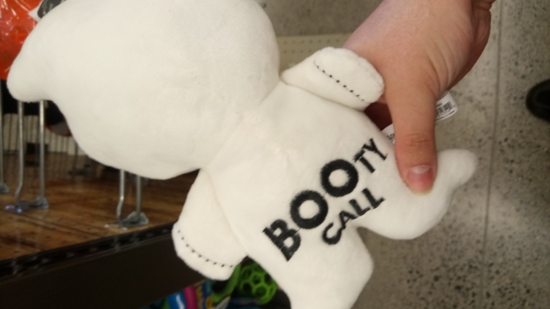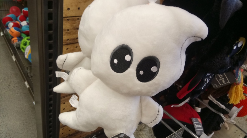 You could be forgiven for thinking that this ghost is cute. I mean, pretty much all ghosts are cute, and this ghost has sad little nubby limbs, a floppy pointy head and even big, giant dark eyes, but then you flip it around, and...No, Petco. Just...no.
