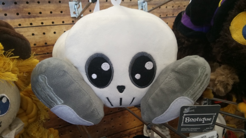 In fact, let's just move right on to Petsmart. Their stuff is AMAZING this year and none of it implies that a little baby ghost wants to ride a boner.Skeleton Cat Toys