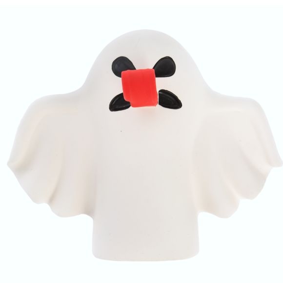 Several "Thrills & Chills" items are just perfectly inoccuous animals, including this pig and an almost identical rabbit, whose big, staring eyeballs just happen to pop out of their sockets. We've all seen that kind of eye-popping toy and nothing really ties it into Halloween specifically, but I appreciate that these particular eye-popping critters are intended to be "spooky."Thrills & Chills Ghost