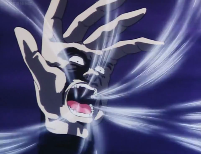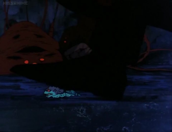 I'd also be remiss if I didn't mention D's secret weapon and snarky sidekick, a face in his hand that's only ever explained as a "symbiote" and can eat basically anything, even inhaling its surroundings like a powerful vacuum, just in case you still thought anything in Inuyasha wasn't ripped off from something else.