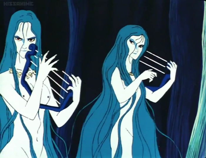 It's not long, actually, before D finally finds himself in a real pickle, walking in on three creepy sirens who speak together...
