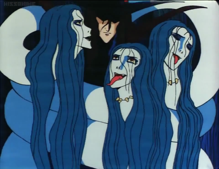 The sisters...heads...whatever they may be have a pretty great time draining D's lifeforce, or whatever it is they so, but the party is cut tragically short as D flips out into vampire mode, because oh yeah, he's half-vampire himself. Of course he is.
