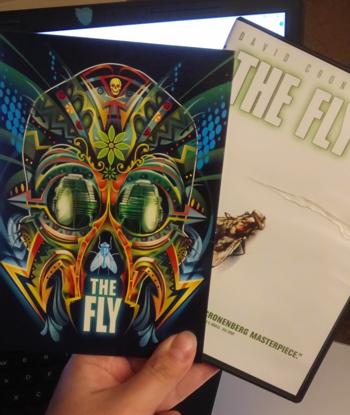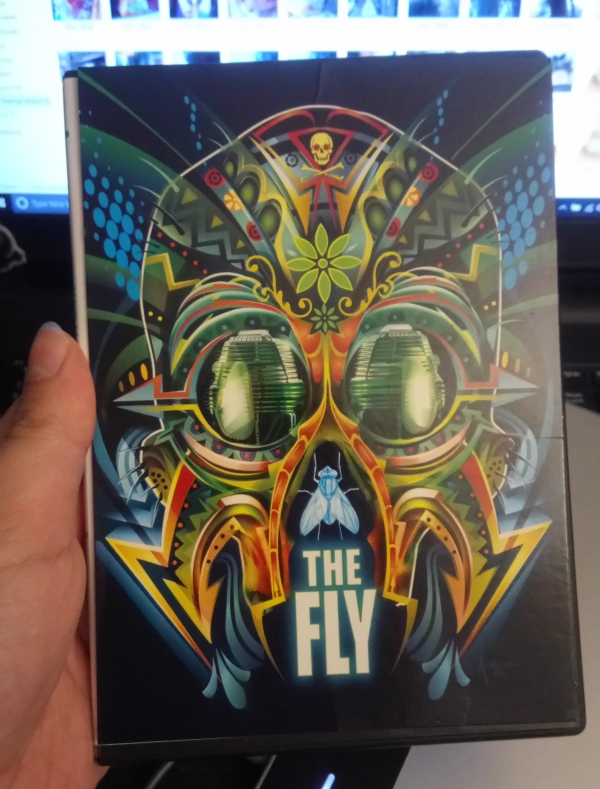 Now, I don't actually need any horror movie on DVD in this golden age of internet streaming, and I don't even need to buy any of these DVD's to appreciate artwork that's already been posted on a number of other websites, but for only five bucks, I just had to pick up such a special copy of The Fly. It's not even one of my favorite movies as a movie, but it definitely contains my favorite movie monster, and just look at that cover! We've got a face appropriately evocative of a human skull, a machine and an insect, complete with fly-like hairs and the notorious telepods themselve as its eyes. That is absolutely too cool for its own good.