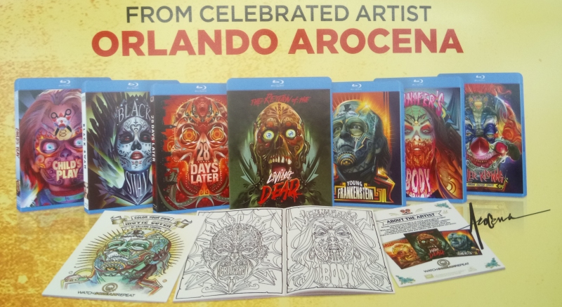 The phrase "Wal Mart Exclusive" is not something you would usually expect in the same sentence as a phrase like "wicked-awesome," but that's Halloween for you. It's an excuse for people stuck working under even the stuffiest megacorporation to have some real, actual fun for once, and I'm sure everybody involved in this had a great time with it - especially Orlando Arocena himself, the artist Wal-Mart has commissioned to illustrate exclusive, 2017-only cover art for nineteen horror DVD's, all priced from only five to ten dollars.