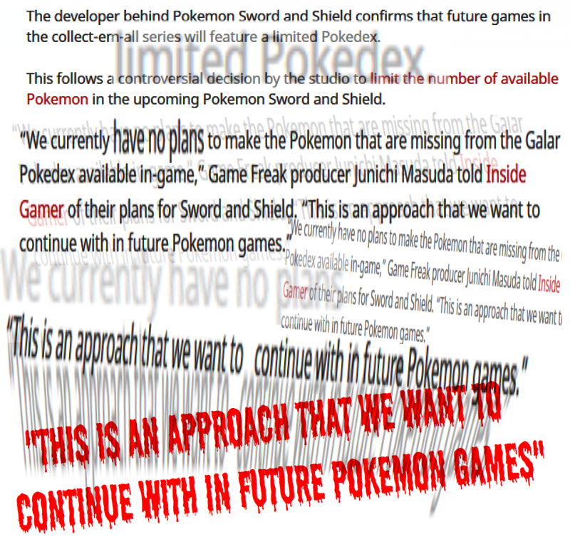 Indeed, no matter what, we all know that the core Pokemon series will always, hell or high water, allow its players build and play with any team of any six pokemon from all those that have ever been made, because that is by far what I've always understood as the entire ultimate goal of playing the games and 90% of their fun, isn't it? Don't most people play the way I'd been playing, eagerly waiting years at a time to see if a new favorite would appeal to them enough to augment their own "signature six??" The core games and their storylines CAN be fun, sure, but at the end of the day, they're all just interactive tools for gathering together and endlessly personalizing your TEAM. Your perfect squad of six no matter what combination of old and new monsters that could possibly ever be! It's who you ARE! THE ULTIMATE. EXPRESSION. OF YOUR SOUL.