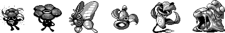 I lived an isolated, homeschooled existence at the time, but I still managed to find a few tweens in public places to trade with, and I can't even tell you how ecstatic I actually was to finally get that corpse flower and pitcher plant in one place. With no concept of the game's strategy aspects, my team became nothing but a countdown of my first top six pokemon designs, which you see here. The fact that this happened to be an entirely poison type team was not lost on me, and in fact, I kind of thought you were expected to specialize that way like so many of the in-game trainers. I was just a "poison trainer" is all, and this was my poison trainer team. Stinking, noxious plants, a spooky bug and a pile of ooze. The first game to ever put any one of these things on my side, except I guess for that Godzilla game where you could play Mothra or something, but of course, a Pokemon is far more special than just some character you've selected to play as. Here was a game in which the characters were unique, individual virtual beings even when someone else chose the same one in their own play, and they could even be given a life outside of their original cartridge. All of that just blew my mind back then.