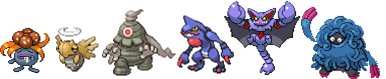 This was the generation that simultaneously introduced two spooky, Halloweeny grass/ghost types, but what ultimately tugged harder on my heart for the remaining spots was a ballroom-masked pink gremlin, a slug I refused to evolve and the grand return of Weezing, because my first real, actual team with Garbodor felt like it needed at least one of the other two pollution mutants, and Weezing is so much grislier and more complex of a design than Muk that I felt it had a better synergy with the big dust bunny. I was also aware of the fact that most of my Pokemon at this point were widely considered the "ugliest," which I didn't do on purpose, but I didn't mind.