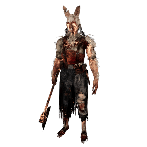 We're getting into some of the really fun ones now, even if this is just another human and I won't have all that much to discuss. The Huntress is a big, burly mountain woman who wears a carved wooden rabbit mask, supposedly to try and appear friendly to children, and subdues her victims with her awesome axe-throwing skills. During gameplay, she also ominously hums a lullaby the entire time, which can be annoying to some, but it's a really unique atmospheric touch to her character.