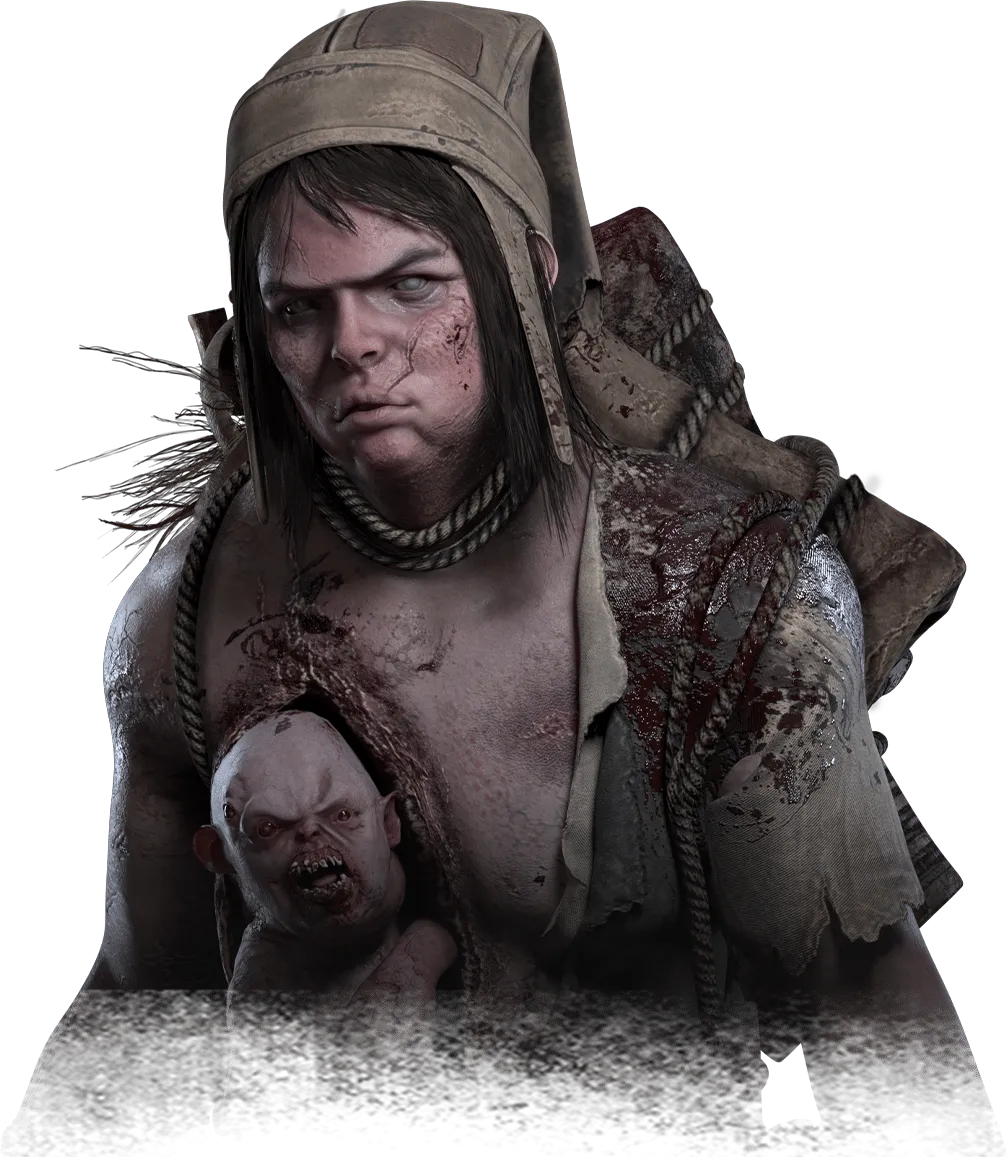 "Charlotte Deshayes can unleash her conjoined twin brother Victor, falling dormant until he’s finished hunting. Victor moves at high speeds and strikes with a pounce attack that debilitates and injures. Down Survivors with Victor and hook them with Charlotte, an oppressive tandem that can quickly disrupt even the best-laid plans."