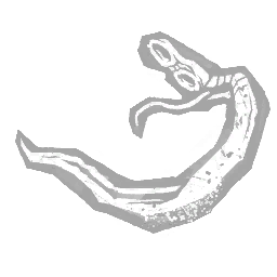These "glands" seem to be formed from intestinal tissue, but they also slough off clouds of teeny tiny little black worms, if you look closely, which actually aren't leeches, if we go by her perk "wriggling parasite," which depicts a mated pair of blood flukes! Another organism I've always been fascinated by! The little thread-like one is the female, if you haven't read enough of my stuff to know already, while the larger boat-shaped one with the suckers is the male: