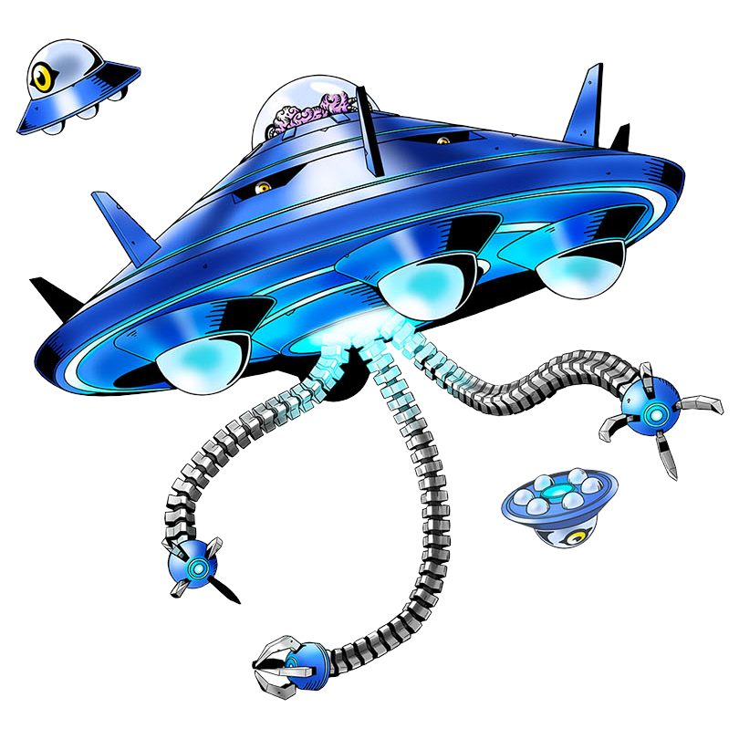 So, it took a while for the Perfect stage of Espimon to finally be revealed, and it's much cooler, obviously. A giant flying saucer with eyes, metal tentacles, and nothing in its cockpit dome but a visible brain?! That's just about one of the coolest machine-like Digimon they've introduced in forever! And it even has little detachable one-eyed UFO drones! Awesome!!! It's so cool, I wish it was connected more to Vademon and Ebemon than the odd, awkwardly designed Espimons. So cool, I also wish it had been an Ultimate level, and it certainly has the epic feel of one, doesn't it?