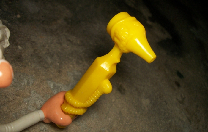 The real reason to get the Laboratory Set, however, was this nightmare hunk of plastic. Twice as large as any of the other accessories, this thing gives the impression of some insectoid demon and a haunted tree, while not actually being at all like either of those things. By far, this creepy freak is the most sinister and dangerous looking of Sy's creations, which might be why its upper limbs are shackled together, though it doesn't even look like much of a hindrance, so maybe it's just a fashion statement.