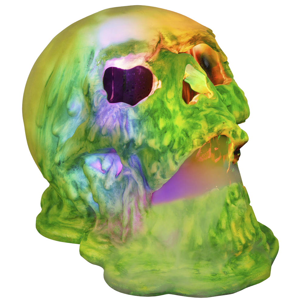 Menards refers to this as just a witch, but it's a witch's broom, with eyeballs, that scoots around and wiggles and cackles, apparently! Hell yeah! This isn't even the first sentient mobile broom we've ever seen, but I think the last one was many years ago, and didn't have eyes. That's an important development!Biohazard Skull