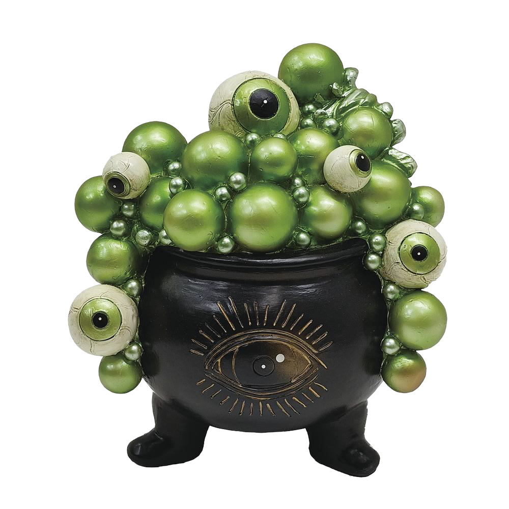 A cool little witch's cauldron statue, with simple boot-shaped "feet" and an eerie eye symbol on the front. Neither the feet nor the eye are overly alive-looking enough that we can be sure of the cauldron's sentience, but it overflows with a multitude of both gleaming green bubbles and a number of eyeballs! I think at least the contents of this cauldron are alive, if you ask me!Animated "Witch"