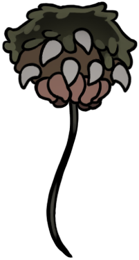 "Toothy growth that lives on cave roofs. Wraps wayward bugs with its long tongue and drags them up to be consumed."